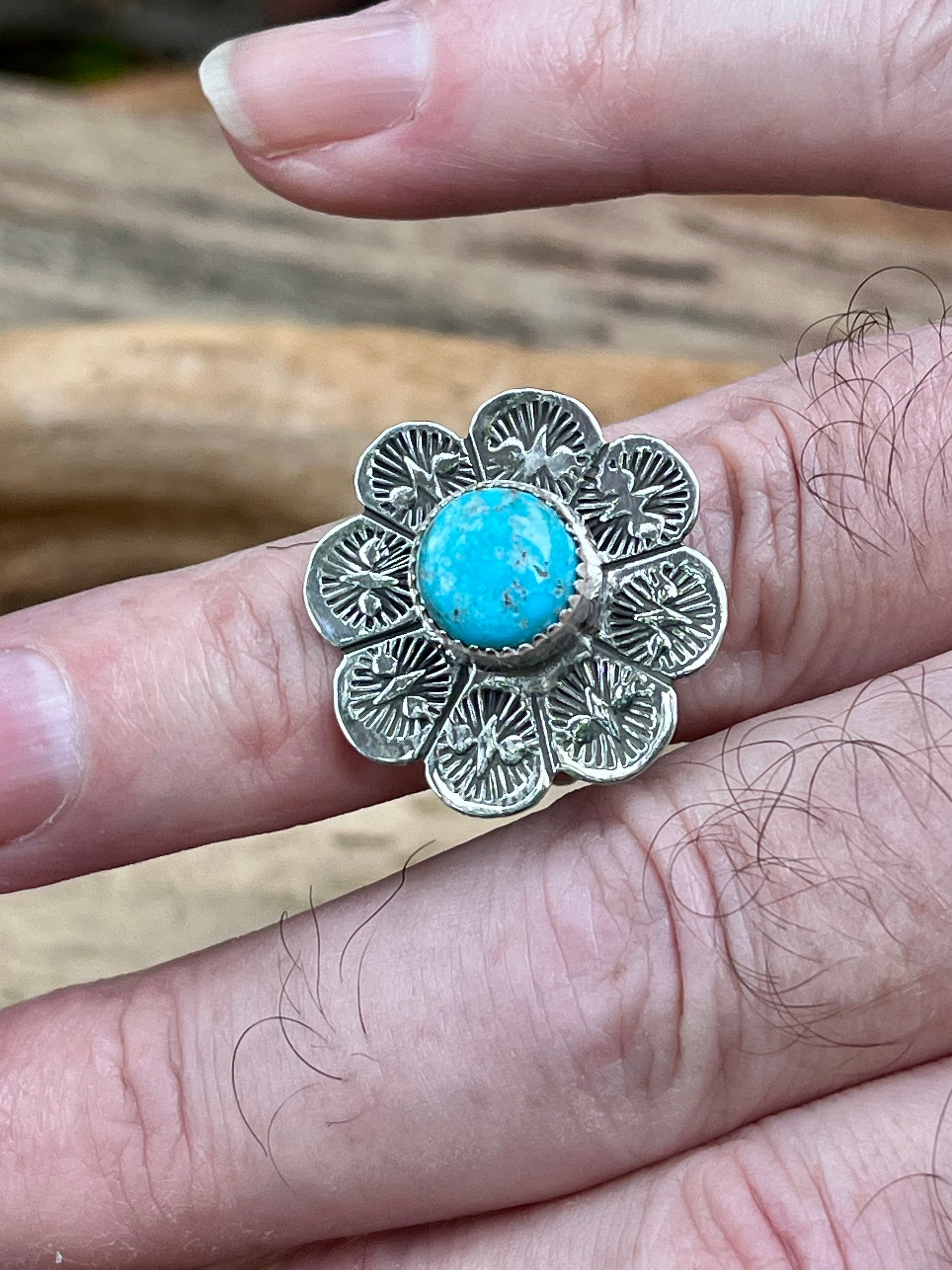 Handcrafted and hand stamped spinner ring.all sterling silver-size 7.5