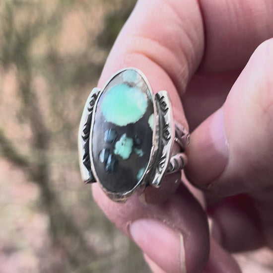 Handcrafted Desert Bloom variscite ring Sz-8.