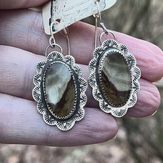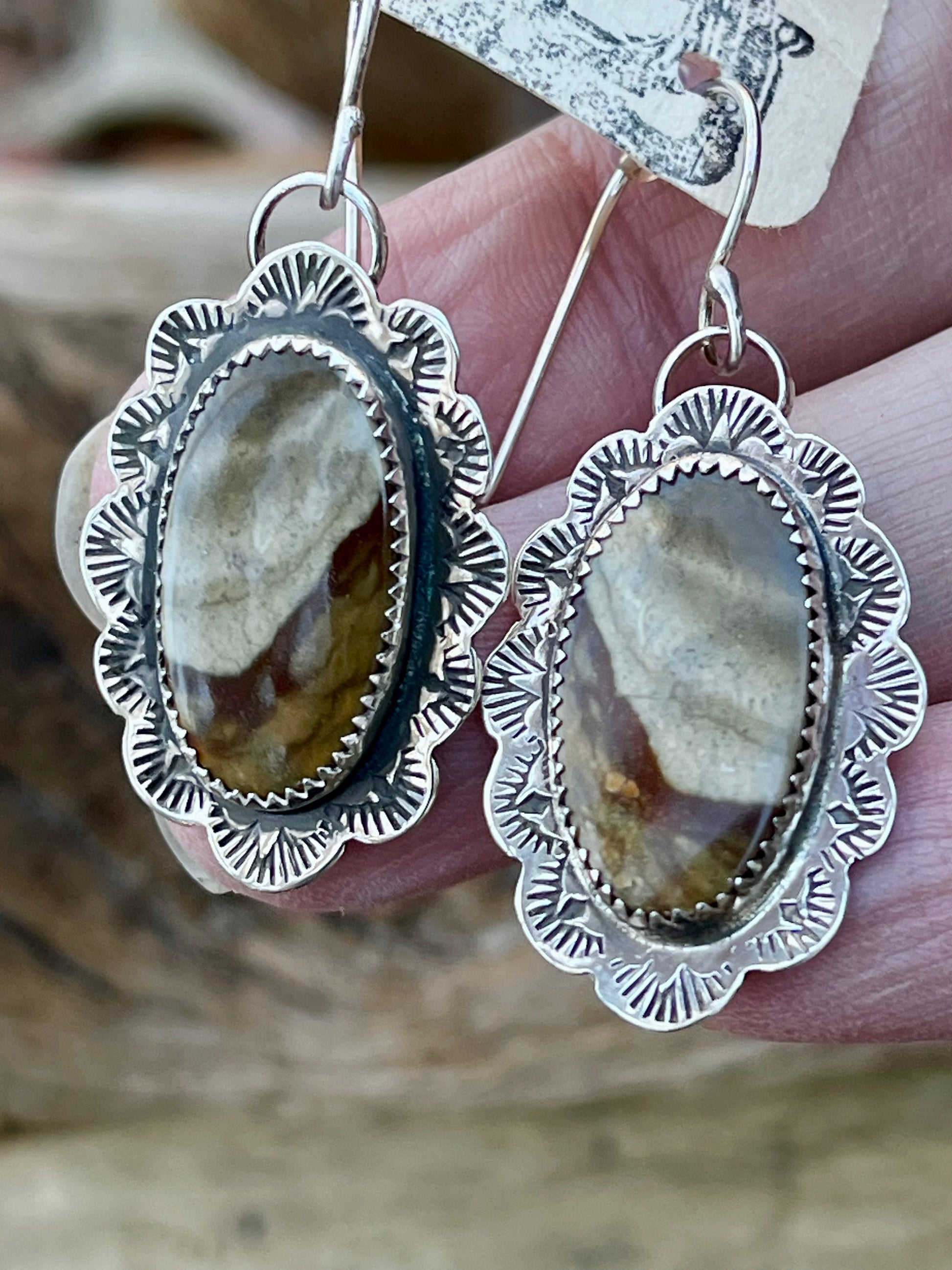 Handcrafted & hand stamped custom Picture Agate Sterling Silver Earrings. *comes with silicone earring backs
