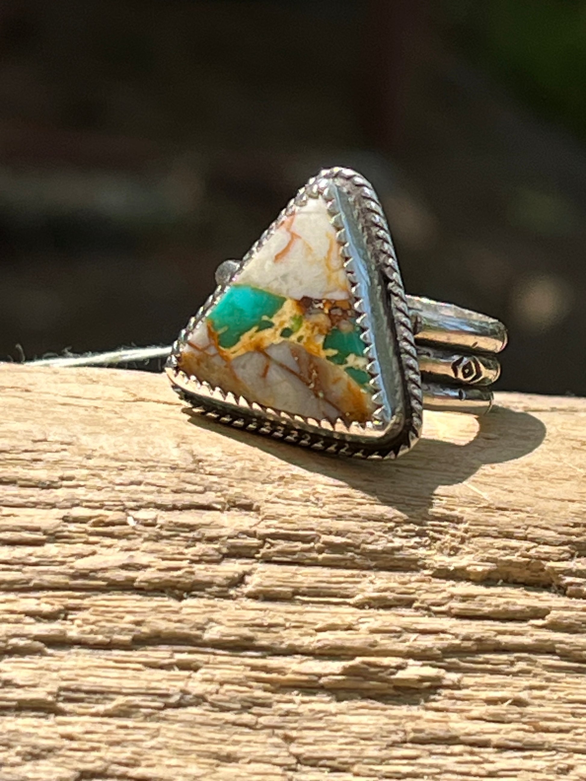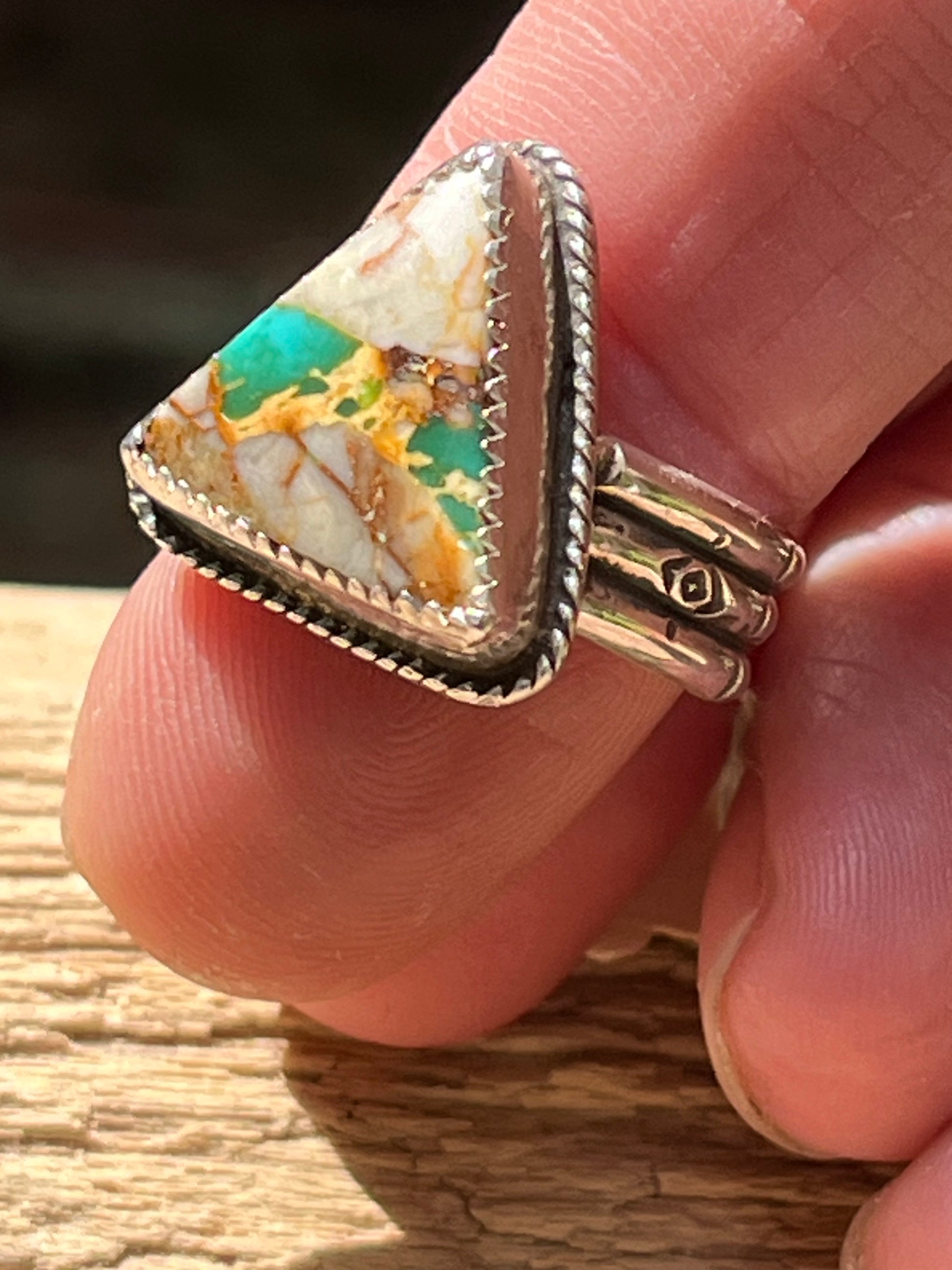 Handmade Pilot Mountain Turquoise sterling silver 3 band ring-size 8