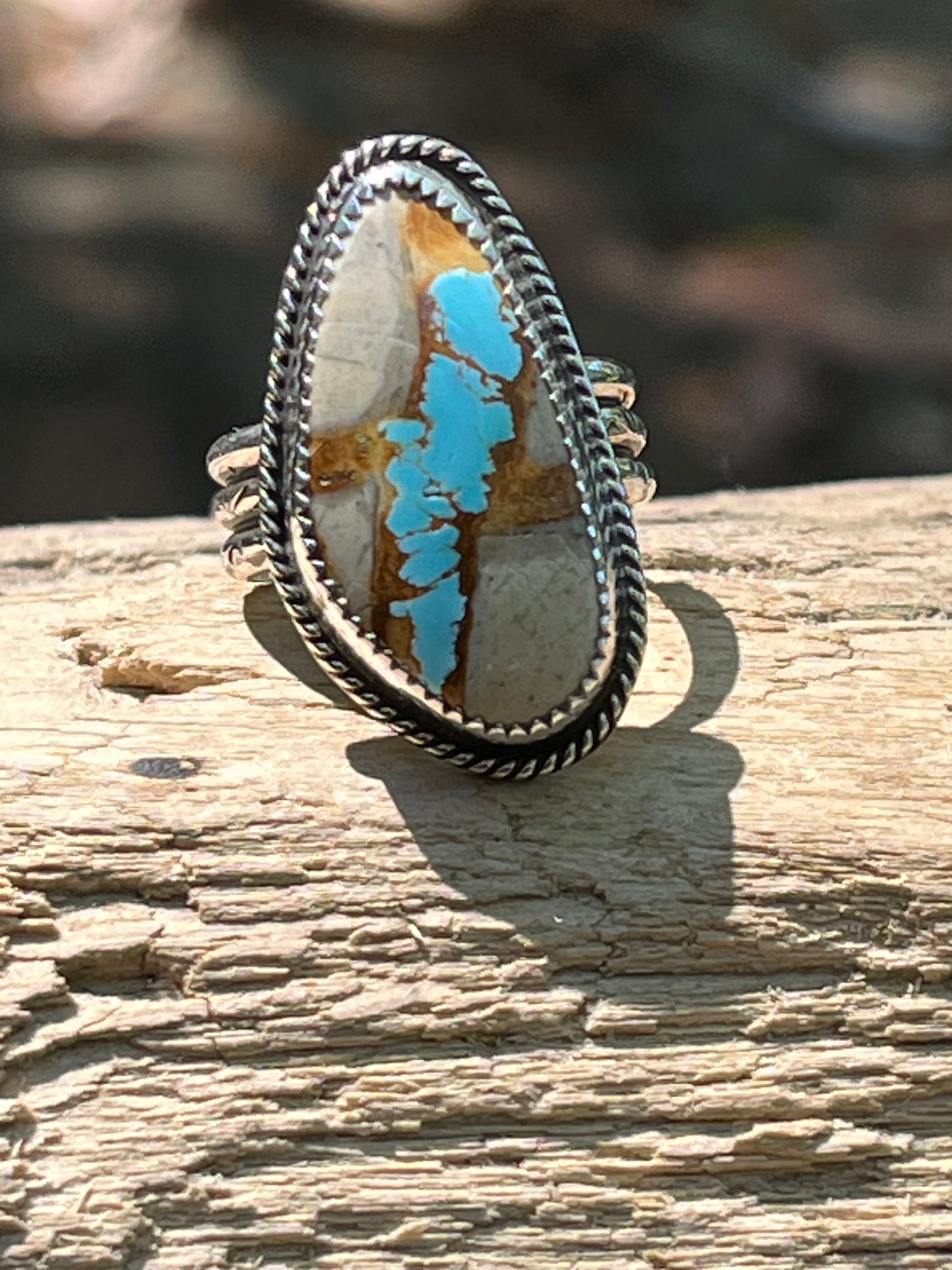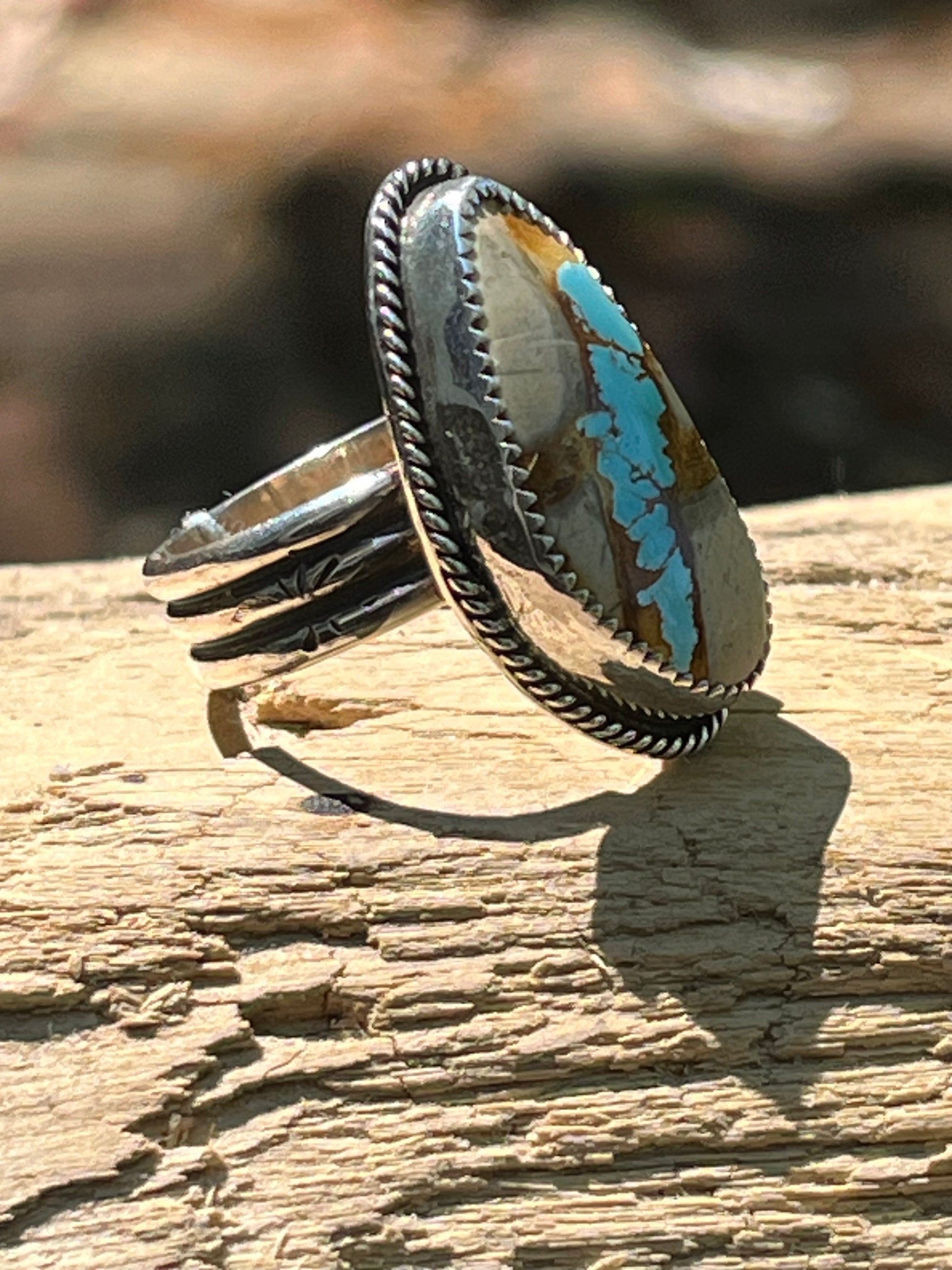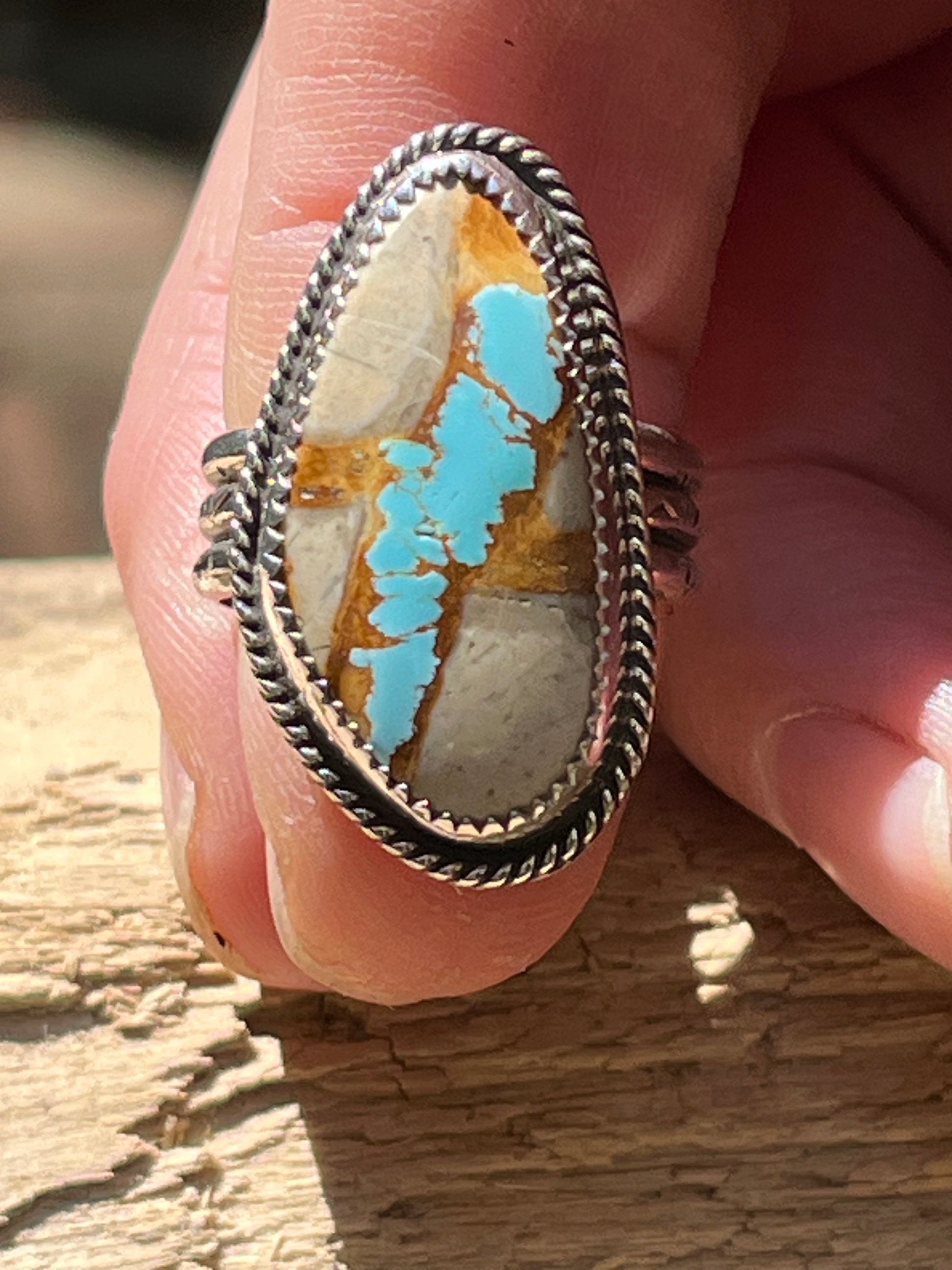 Handmade Royston Ribbon Turquoise ring. Sterling silver with triple band-size 7.5