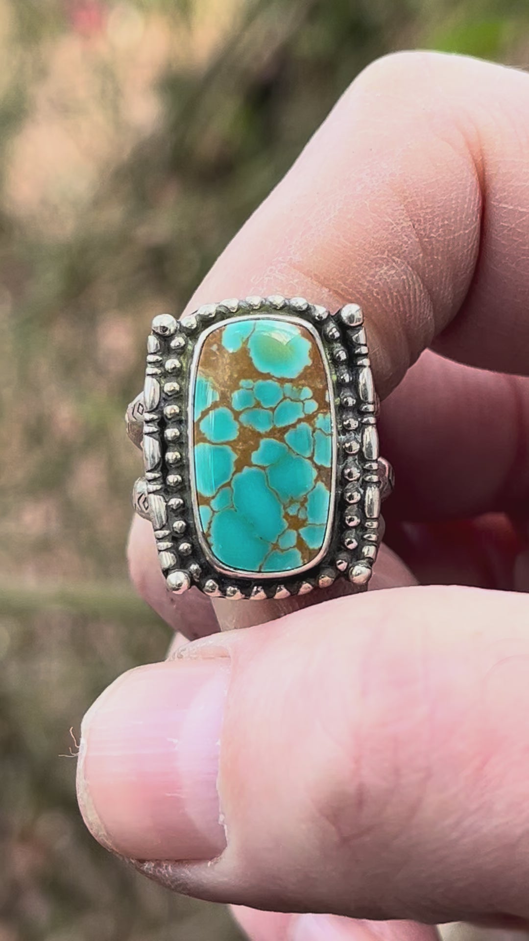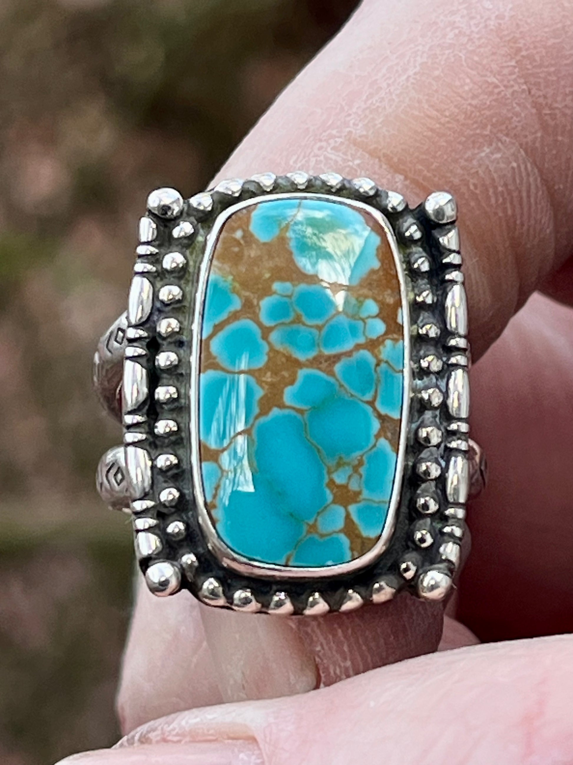 Handcrafted Supernova turquoise ring Sz-7.sterling silver. Hand stamped Dbl band