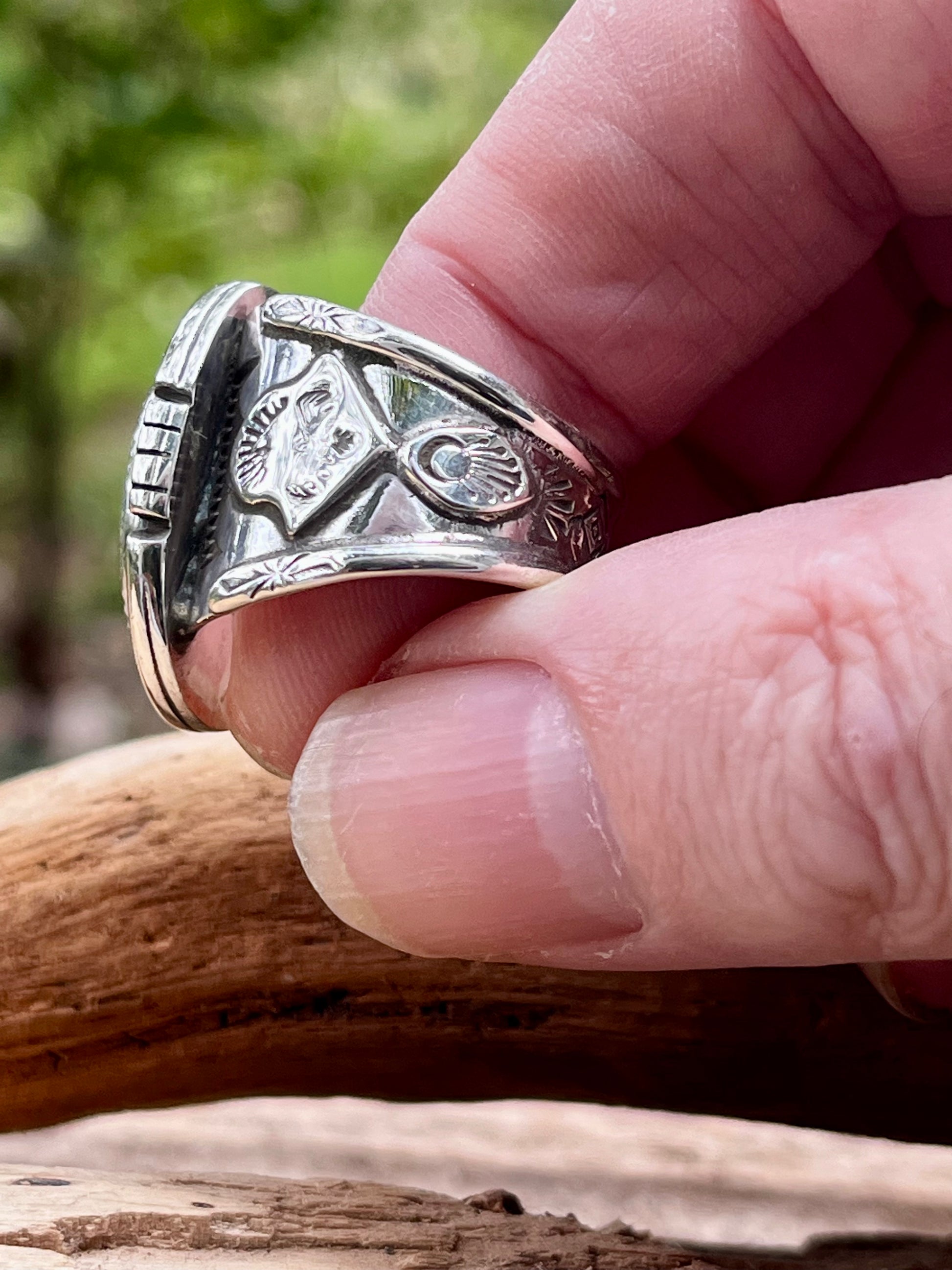 Handcrafted and hand stamped custom band. All sterling silver. Size 10